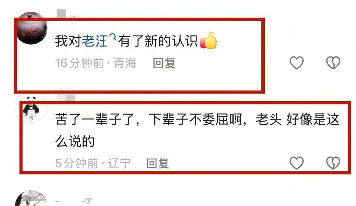 不外老汪那些谈话,再加上他在现场“闹场”的阐扬,的确让东谈主惊掉了下巴。在老爷子的灵堂上,他竟然说出了那句让东谈主搞不懂的话:苦了一辈子了,下辈子不服身丫。