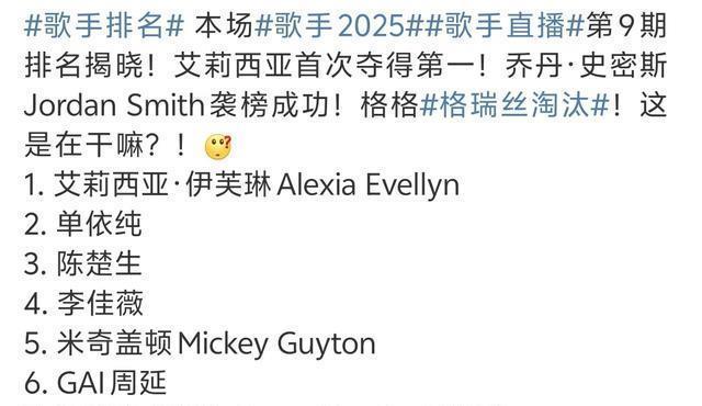 刚刚,《歌手》第九期直播兑现。令东说念主不测的是,也曾联贯得到过两秩序一的异邦歌手Grace惨遭淘汰,跑调破音的艾莉西亚竟然得到了第别称,果真脚本彰着。